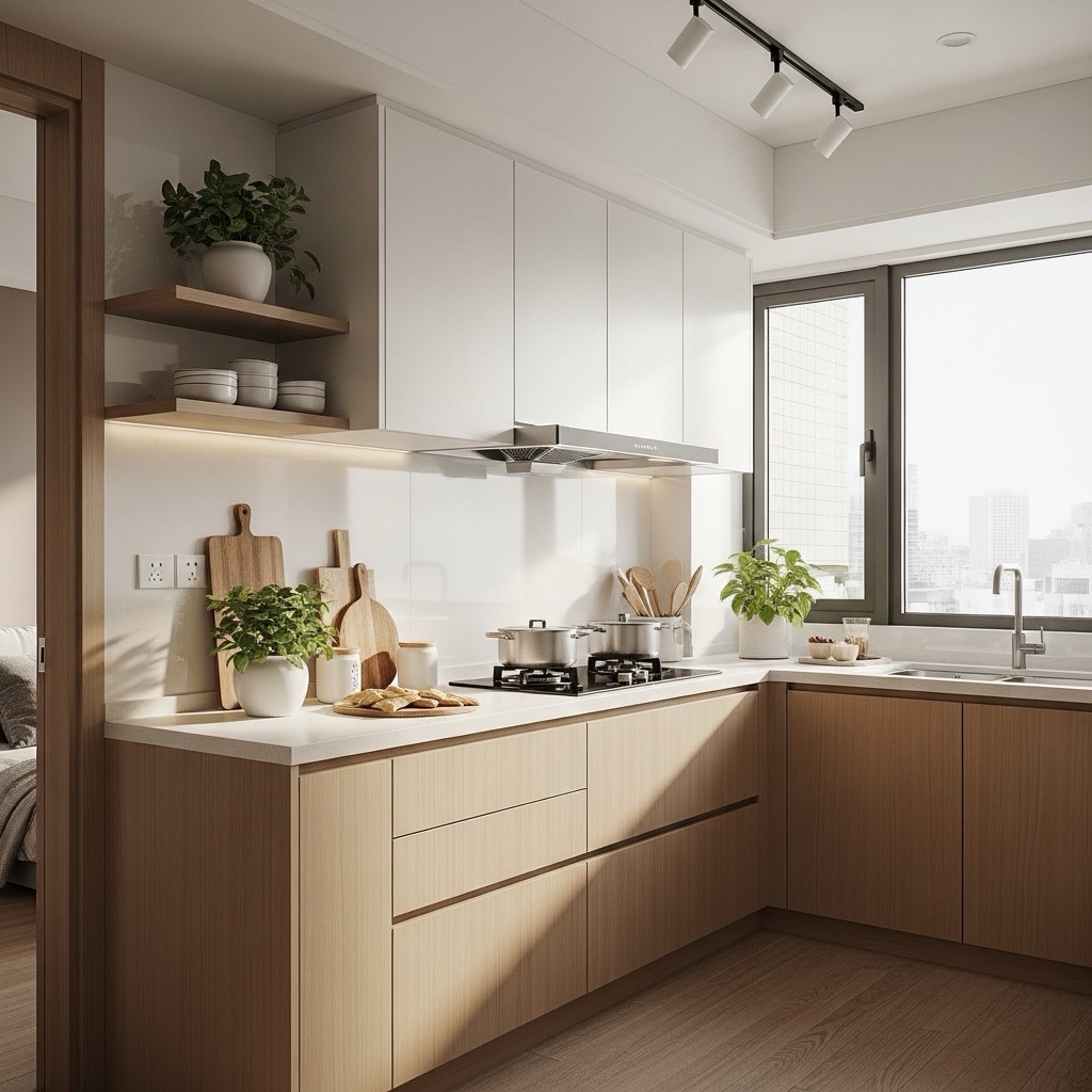 同時,奇閣在吊櫃安裝中加入防傾支架與紅外線水平校正,確保整體結構穩固。對於廚房與浴室等高濕度區域,則採用強化防潮板搭配ABS封邊,使使用壽命更長久。